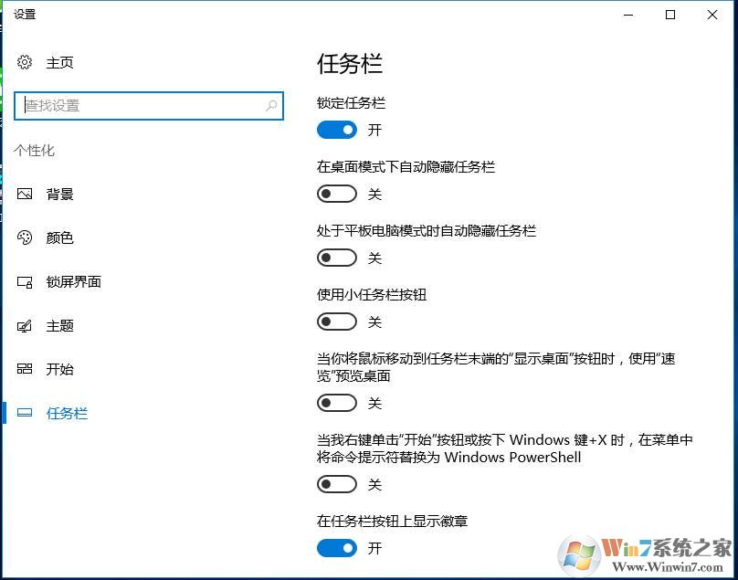 4、這時我們來到個性化設(shè)置界面了,有很多設(shè)置項目,如桌面背景、任務(wù)欄設(shè)置、鎖屏壁紙、主題等等。