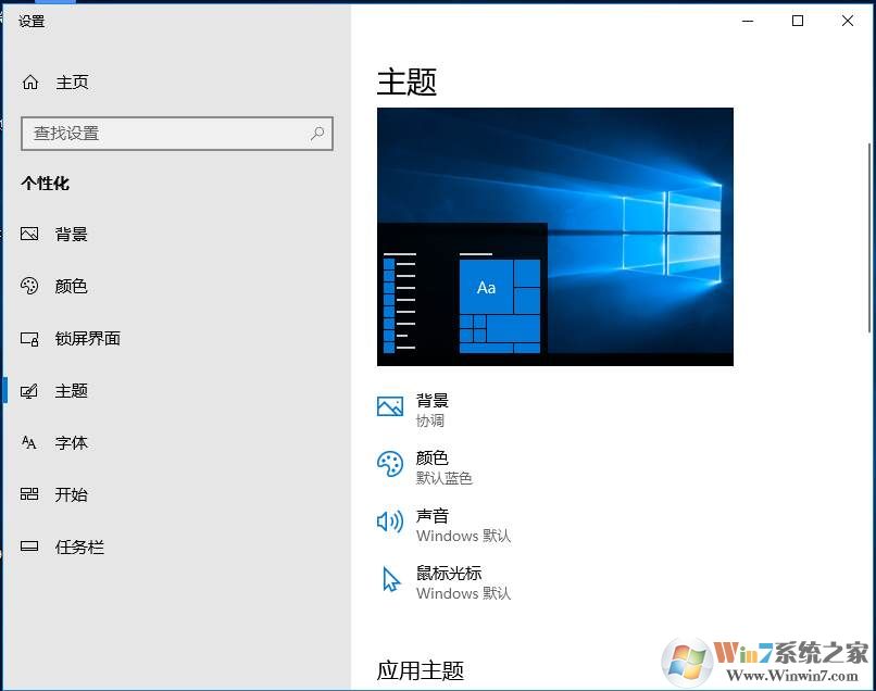 7、主題設(shè)置,可以對背景、顏色、系統(tǒng)聲音、光標(biāo)樣式等進行更改。