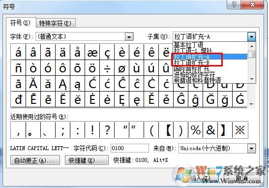 3、在子集中,拉丁語(yǔ)擴(kuò)充-A 和拉丁語(yǔ)擴(kuò)充-B 中我們可以找到需要的拼音聲調(diào);