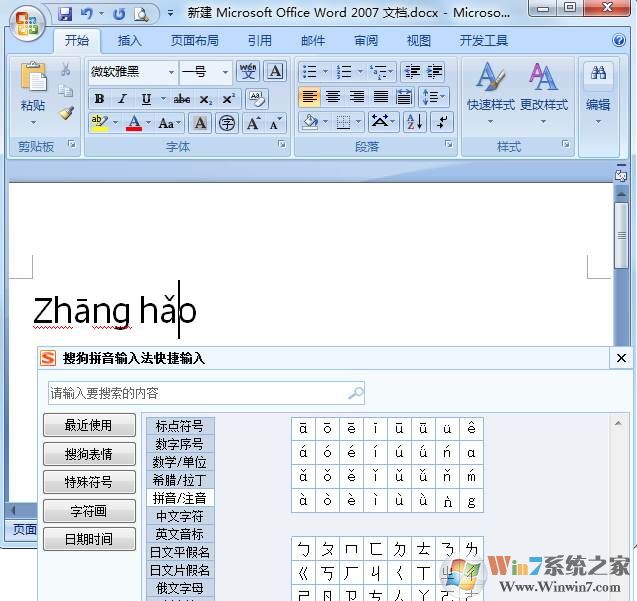 3、選擇你需要輸入的帶聲調(diào)的拼音字母,然后點(diǎn)擊插入按鈕,如下圖 zhang