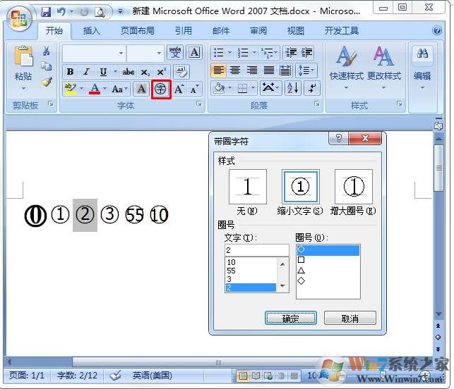 1、在Word中輸入數(shù)字,然后點擊上面的字,然后設(shè)置縮小文字,就可以打出帶圈的數(shù)字了,可惜好像100是不能打的,3位數(shù)的不可以。