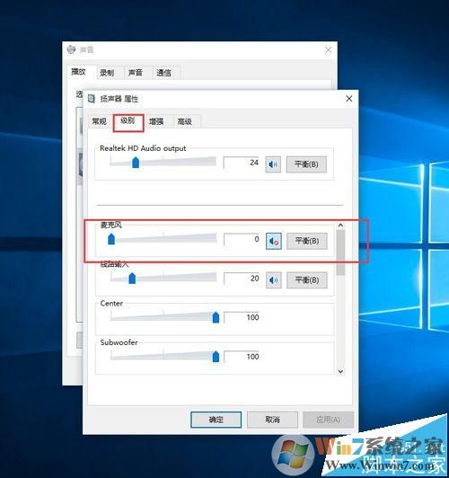 3、然后再在“揚(yáng)聲器”的屬性里面找到“級(jí)別”,修改下面“麥克風(fēng)”的數(shù)字,修改成0.