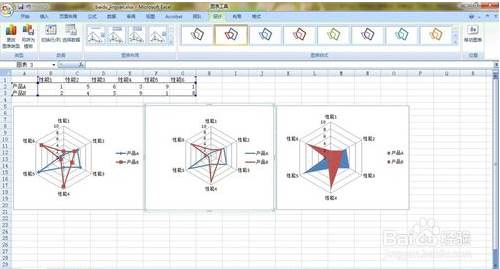 Excel直接給出的雷達圖可能在顏色上啊,線條上啊可能不是你喜歡的類型。你可以在“圖表工具”中的三個功能中進行修飾。