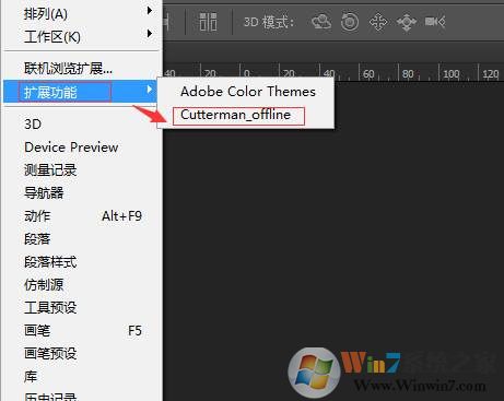 2、安裝完成之后,打開/重啟photoshop,在菜單欄選擇"窗口" -> "擴(kuò)展功能" -> Cutterman就可以打開啦。