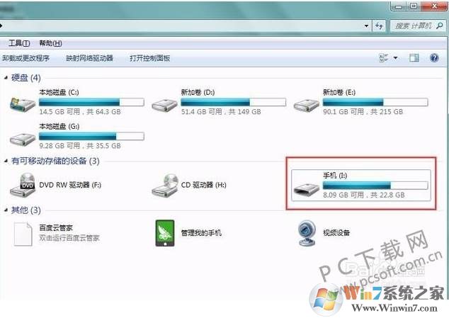 2、因?yàn)锳PP安裝失敗,手機(jī)內(nèi)存卡中會(huì)出現(xiàn)一個(gè)臨時(shí)文件,大家可以通過數(shù)據(jù)線連接電腦,然后會(huì)在電腦上看到一個(gè)“手機(jī)”的可移動(dòng)設(shè)備,如下圖所示,就在紅框選中的位置。