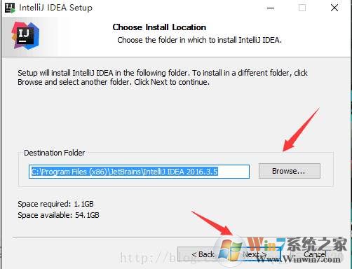 6、在這里,需要說明一下,IntelliJ IDEA 默認(rèn)是安裝到 C 盤的“Program Files (x86)”目錄下的,如果咱們想安裝到 C 盤的該目錄下,點(diǎn)擊“Next”即可;如果想修改 IntelliJ IDEA 的安裝目錄,則點(diǎn)擊“Browse”進(jìn)行修改,如博主修改 IntelliJ IDEA 的安裝目錄后,如下圖所示: