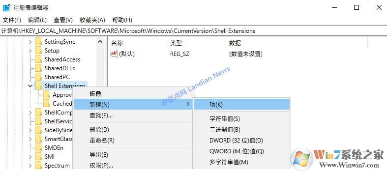 4、然后鼠標放在Shell Extensions文件夾(項)上點擊右鍵—>新建—>項,將這個項的名稱改為Blocked