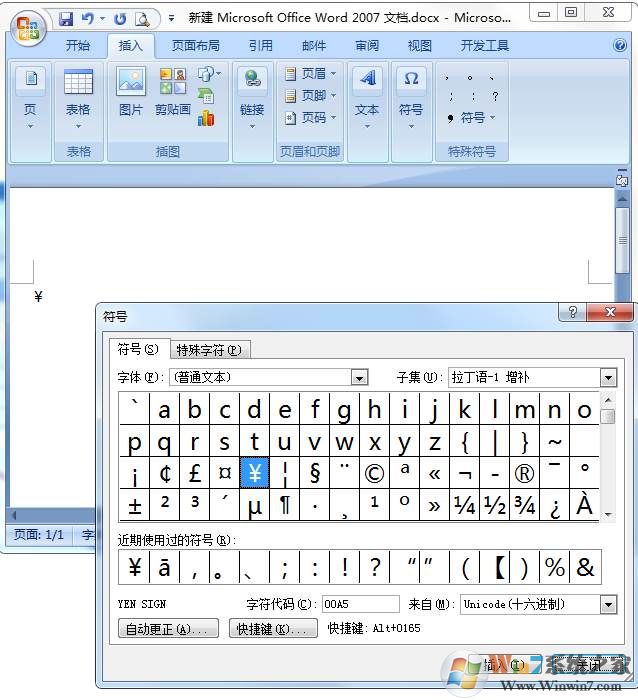 打開word選擇插入,特殊符號,選擇拉丁語-A 增補,如下圖,我們可以看到人民幣符號,點擊一下就可以插入了。