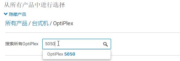 3、此時我們在 輸入服務(wù)標(biāo)簽和產(chǎn)品ID 下面輸入 型號,比如小編當(dāng)前使用了optiplex 5050型號的臺式機(jī),所以直接輸入搜索即可,如果不知道的話可以通點擊“檢測PC”來安裝插件自動檢測硬件;