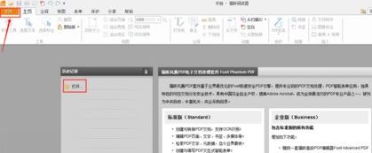 2、可以點擊左側歷史記錄的【打開】按鈕從本地電腦上打開PDF文件,也可以點擊左上角的【文件】打開本地PDF文件,如截圖: