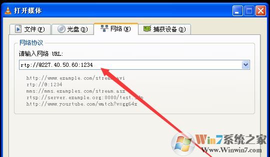 8、如果播放為UDP模式,則輸入udp://@地址+端口號(hào),。如果播放為RTSP模式,則輸入RTSP://@地址+端口號(hào)。