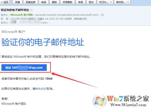 4、 此時(shí)在您注冊(cè)寫(xiě)入的郵箱中會(huì)受到來(lái)自微軟的驗(yàn)證郵件,點(diǎn)擊“驗(yàn)證XXXXXXXX.com”,然后登錄微軟官方測(cè)試此后注冊(cè)完成。如圖: