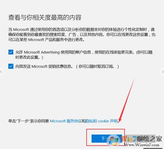 3、 在窗口中輸入賬戶信息及微軟賬戶的密碼,選擇“下一步”,如圖:
