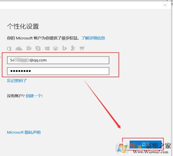 3、 輸入微軟賬戶及密碼點(diǎn)擊“登錄”,如圖: