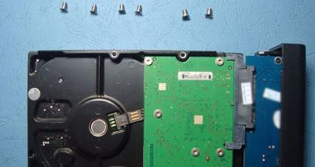 3、然后把裝好接口的硬盤平推到硬盤盒里,將硬盤盒側(cè)過來,可以看到安裝螺絲的位置,對齊硬盤上的位置進行安裝;