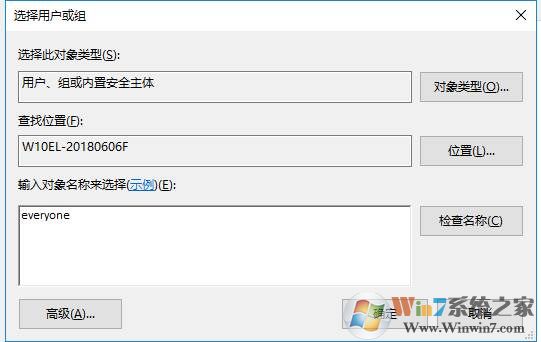 3、在選把握用戶或組對話框中,下面輸擴 everyone 確定;
