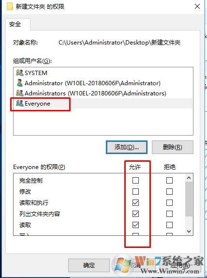 4、到這里everyone帳戶權(quán)限添加完成,我們還可以為其設(shè)置一下權(quán)限,是否完全控制還是只能讀不能寫等,可以根據(jù)自己的需要設(shè)置。