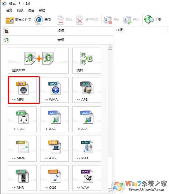 2、安裝之后打開,如下圖,點擊音頻下的mp3;