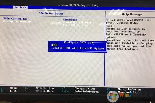 二、將BIOS setup->device->ATA drive setup->configure SATA as設(shè)置為AHCI。兩種方式二選一即可。