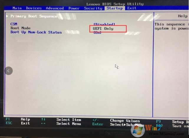 2、進(jìn)入Startup->CSM設(shè)置為Disable,注意此時Boot Mode為UEFI Only;