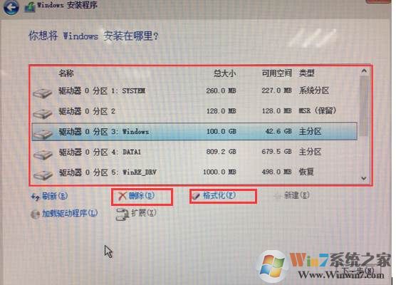 3、并將硬盤中所有分區(qū)格式化或者刪除后重新分區(qū);