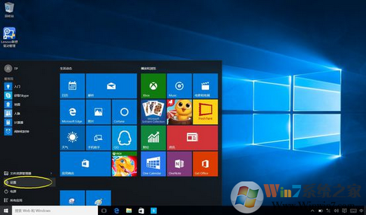 1、首先從開(kāi)始菜單打開(kāi)設(shè)置選項(xiàng),如下圖: