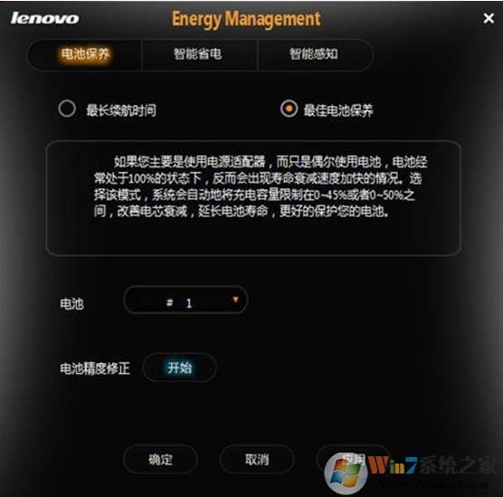預裝新版本聯想電源管理軟件(如 Energy Management 6.0),已經可以幫助電腦用戶實現上述電池電量的控制。如下圖所示: