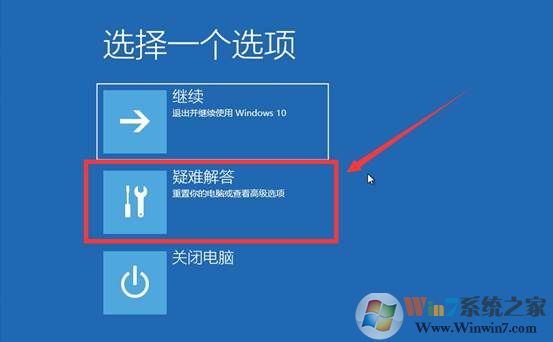 1、強(qiáng)制斷電三次開(kāi)機(jī)后,啟動(dòng)選擇疑難解答,如圖: