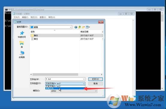 10、若看不到需要備份的文件,將默認(rèn)txt文本文檔類型更改為所有類型,如圖: