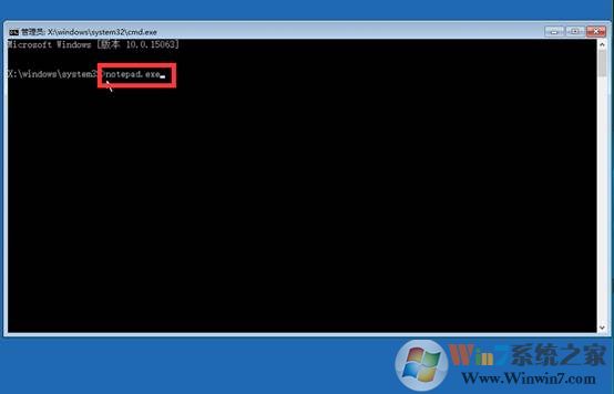 7、彈出命令提示符,輸入notepad.exe回車,如圖: