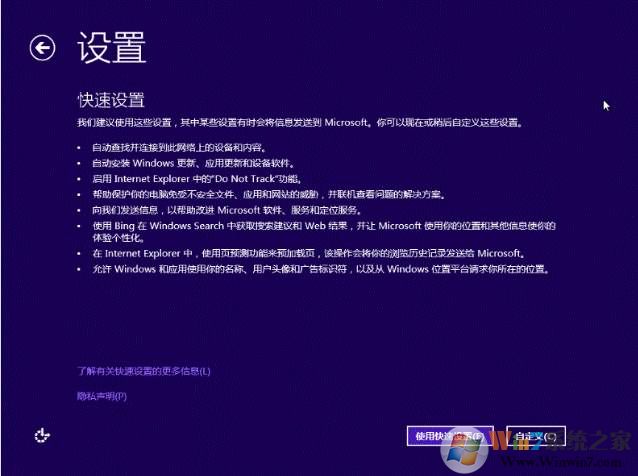 2、建議使用快速設(shè)置,點(diǎn)擊使用快速設(shè)置后直接跳到向?qū)У?ldquo;登錄”步驟,也可以選擇“自定義”按鈕分別驗(yàn)證這些設(shè)置;