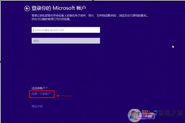 4、這時(shí)會(huì)出現(xiàn)登錄你的Microsoft帳戶的界面,一般來(lái)說(shuō)大家都沒(méi)有這個(gè)帳戶,并且小編也不推薦使用微軟帳戶登錄,選擇【創(chuàng)建一個(gè)新帳戶】;