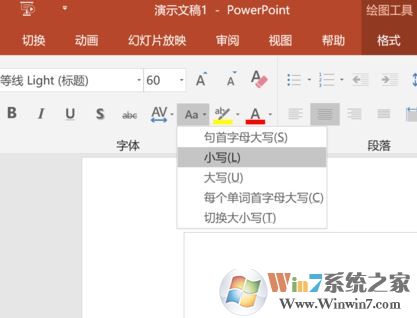 4、此時(shí)我們需要選擇在開始選項(xiàng)卡里面的,大小寫的圖表,以來(lái)更改英文字母的大小寫。
