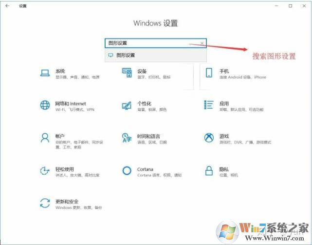 1、在設置中搜索【圖形設置】(Win10 1803才有)