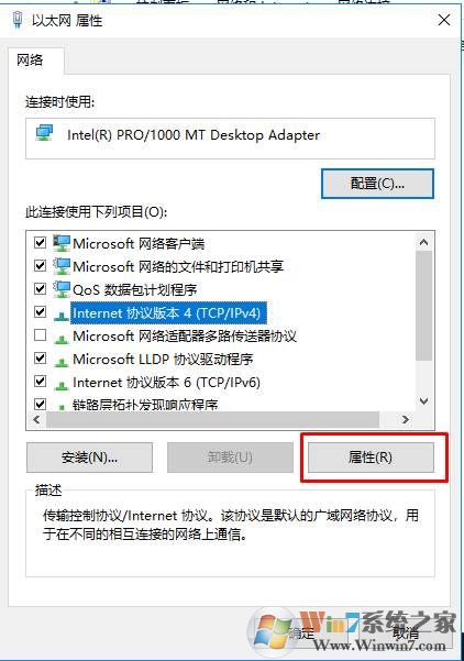 4、接下來點擊internet協(xié)議版本 4 (TCP/IP),選擇屬性;