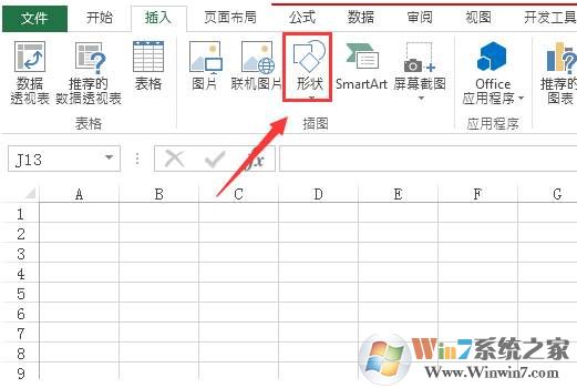 1、首先我們打開(kāi)excel在插入里找到形狀選項(xiàng),如圖所示: