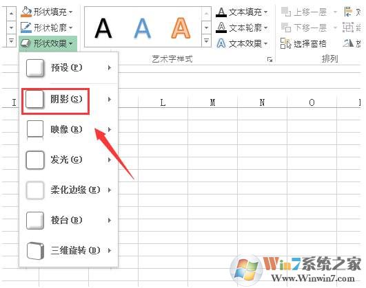 4、然后在形狀效果中找到陰影,具體如圖所示: