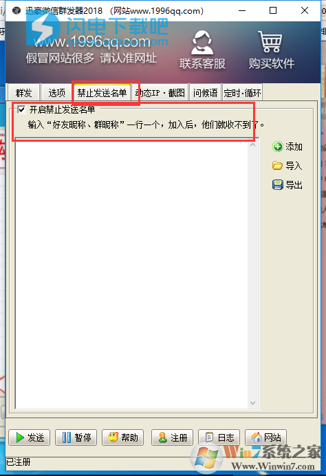 1、在本站下載并安裝后運(yùn)行軟件,然后登錄微信電腦版,點(diǎn)擊好友頭像說明:從選中的好友向下發(fā)送,不需要發(fā)送的可以把昵稱加入軟件禁止發(fā)送名單