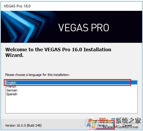 1、首先下載 MAGIX VEGAS PRO 16 雙擊進(jìn)行安裝,默認(rèn)選擇english即可點(diǎn)擊”Next”下一步