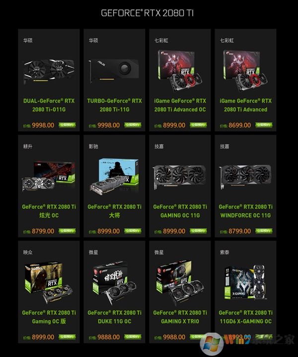 各大產(chǎn)商發(fā)布的RTX2080/RTX2080TI 價格。