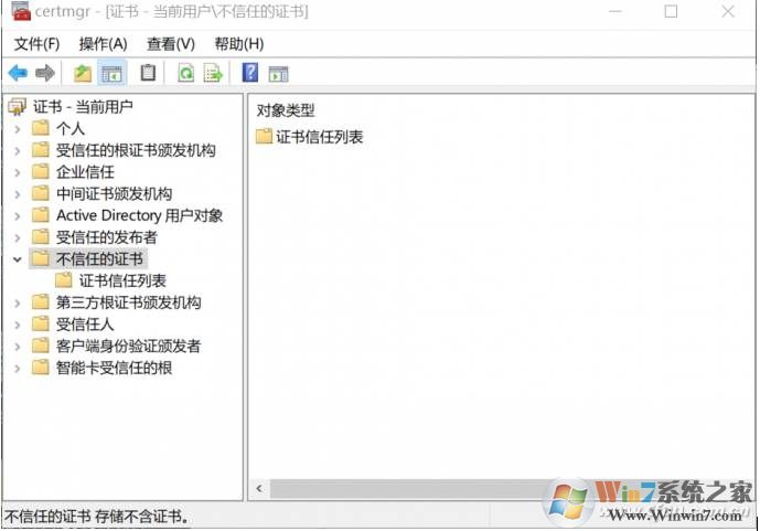 進入“管理用戶證書”后刪除“不信任的證書”下的內(nèi)容就好。