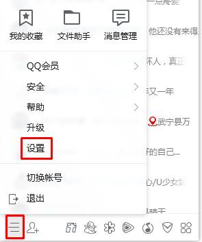 1、點(diǎn)擊QQ下面打開設(shè)置,如下圖;