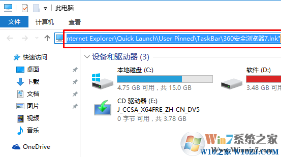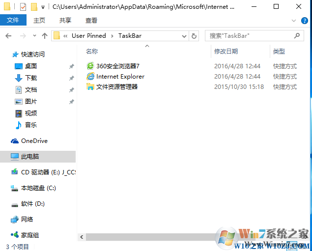 得到地址為:C:\Users\Administrator\AppData\Roaming\Microsoft\Internet Explorer\Quick Launch\User Pinned\TaskBar\www.w10zj.com