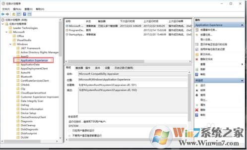 2、打開計(jì)劃任務(wù)后如下圖所示。依次展開左側(cè)列表Microsoft---Windows---Application Experience;