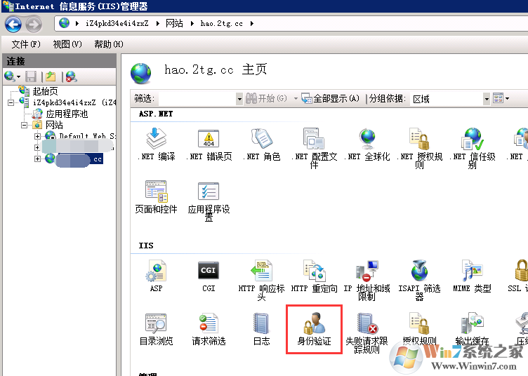 1、首先打開IIS,然后選擇你要設(shè)置的網(wǎng)站,然后在右側(cè)打開【身份驗證】;