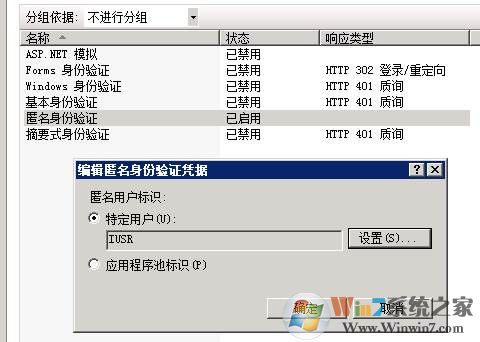 2、右鍵匿名身份驗證,選擇“編輯”,選擇“特定用戶IUSR”; Win7系統(tǒng)之家 m.cncxm.com 整理