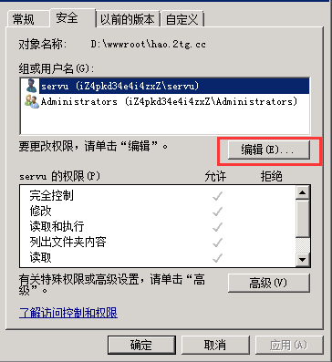 3、然后打開你的網(wǎng)站文件夾,右鍵屬性,來到安全選項下,點擊編輯winwin7.com