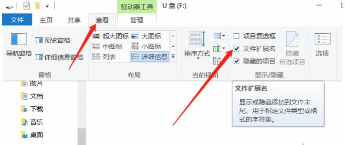 2、接下來在上面菜單上,點擊切換選項卡到“查看”,勾選“文件擴展名”。