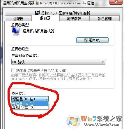 3、把顏色選項(xiàng)中的“真彩色(32位)”改為“增強(qiáng)色(16位)”,點(diǎn)擊應(yīng)用。注意,點(diǎn)擊完應(yīng)用之后,所有的邊框的顏色都會(huì)改變,變成不透明的,不過(guò)不用怕,再點(diǎn)擊確定即可,如下兩張圖: