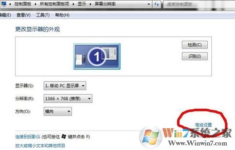 2、在彈出的這個(gè)“屏幕分辨率”頁(yè)面中,點(diǎn)擊右下角的高級(jí)設(shè)置,再在彈出的新頁(yè)面中選擇“監(jiān)視器”;